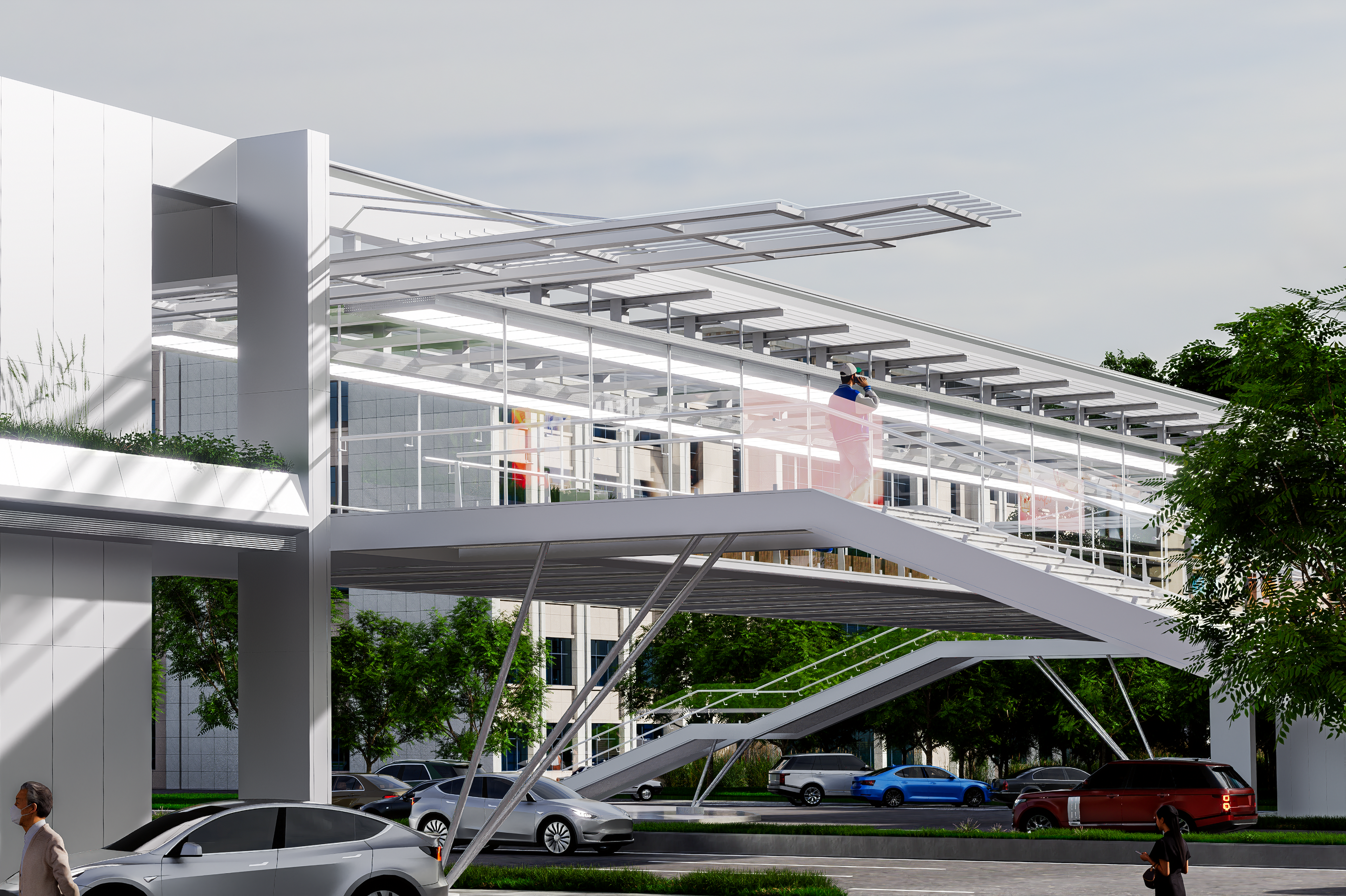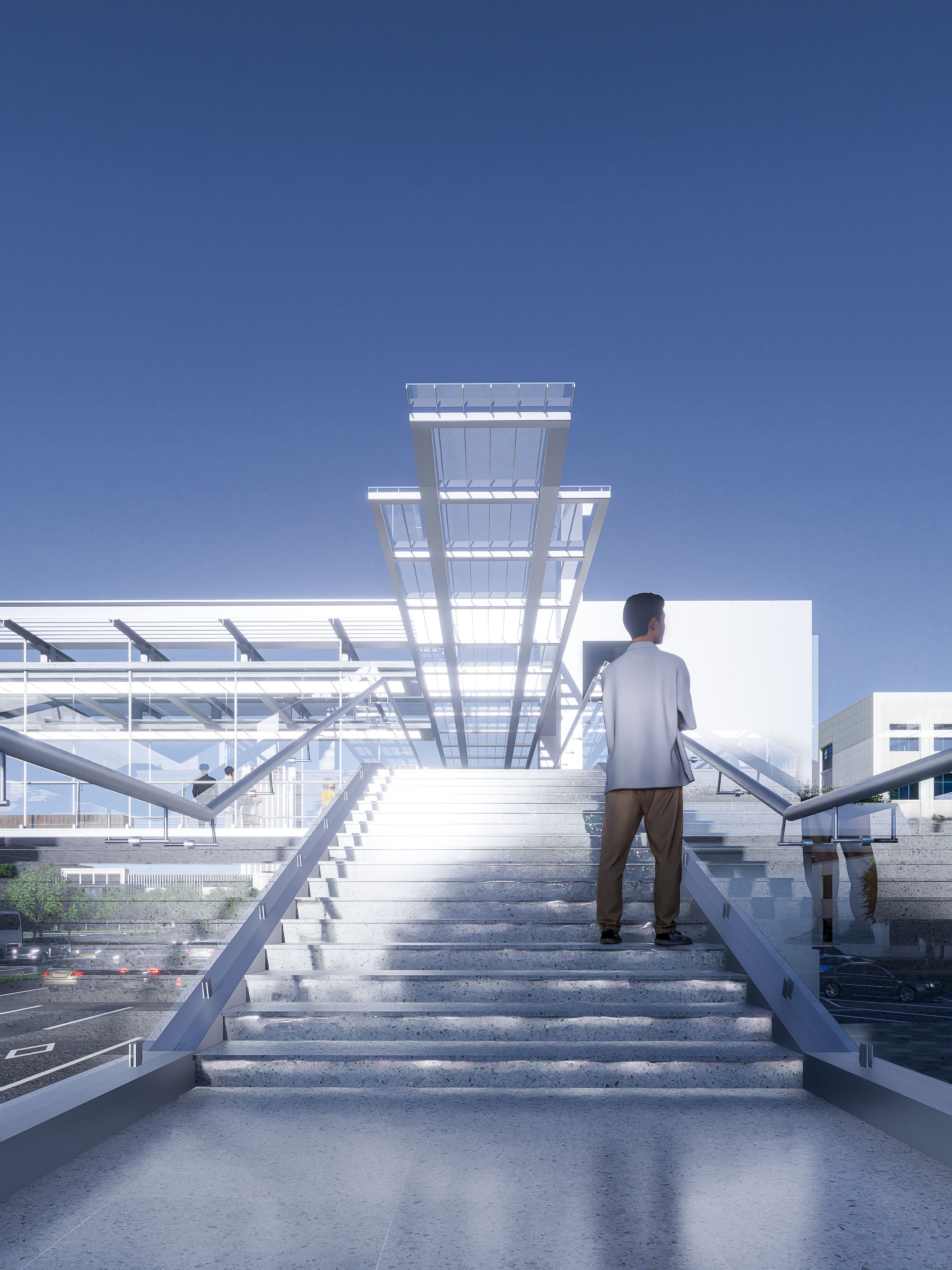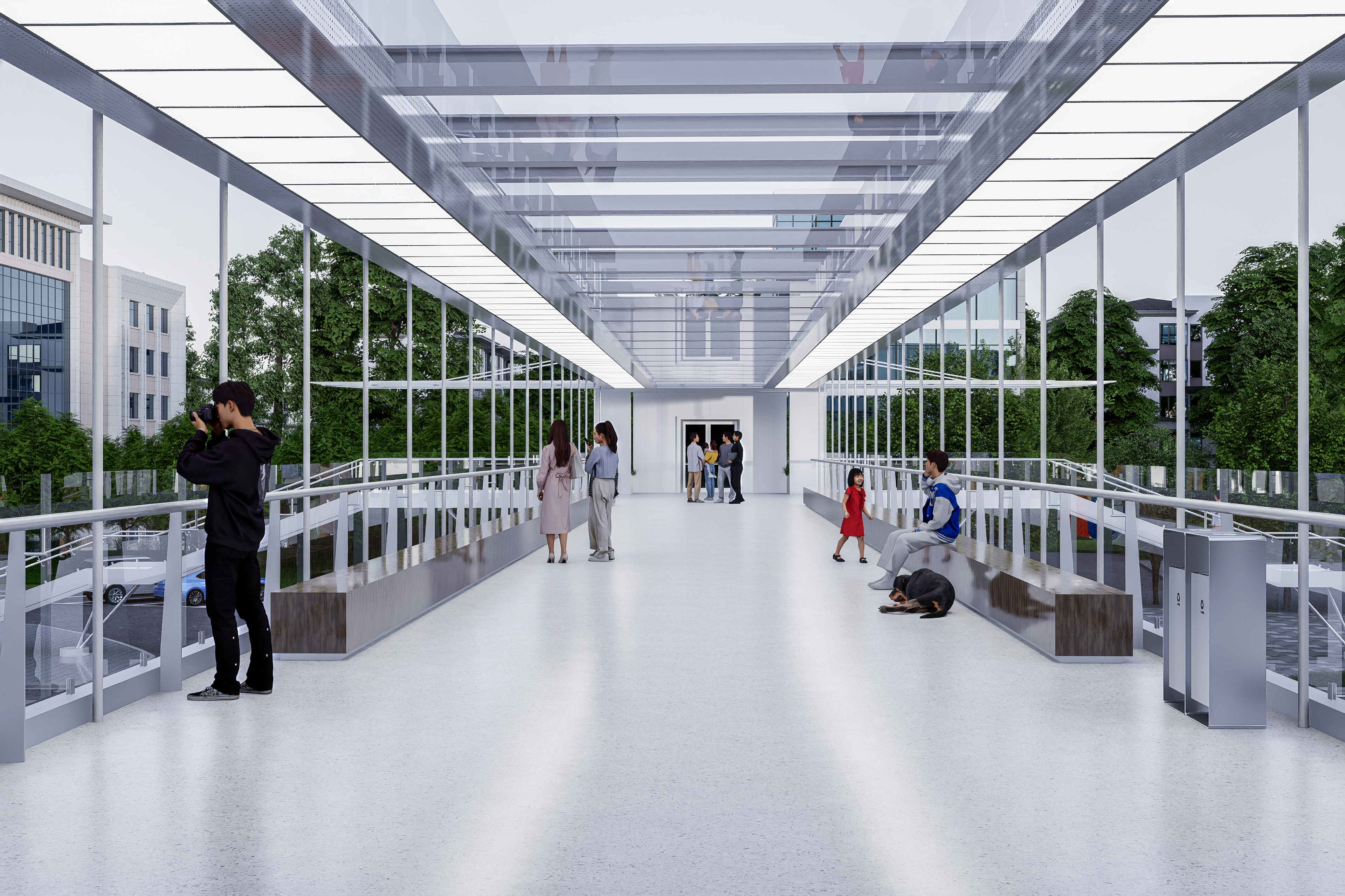 - 人行桥各方位的城市功能非常丰富,人群构成也比较复杂,通过对于各方位人流来源的分析,我们希望这不仅仅是一座人行桥,更是联系东西的城市纽带,是融入环境的街区风景,是激发地区活力的助推动力,更是展望未来的区域名片。