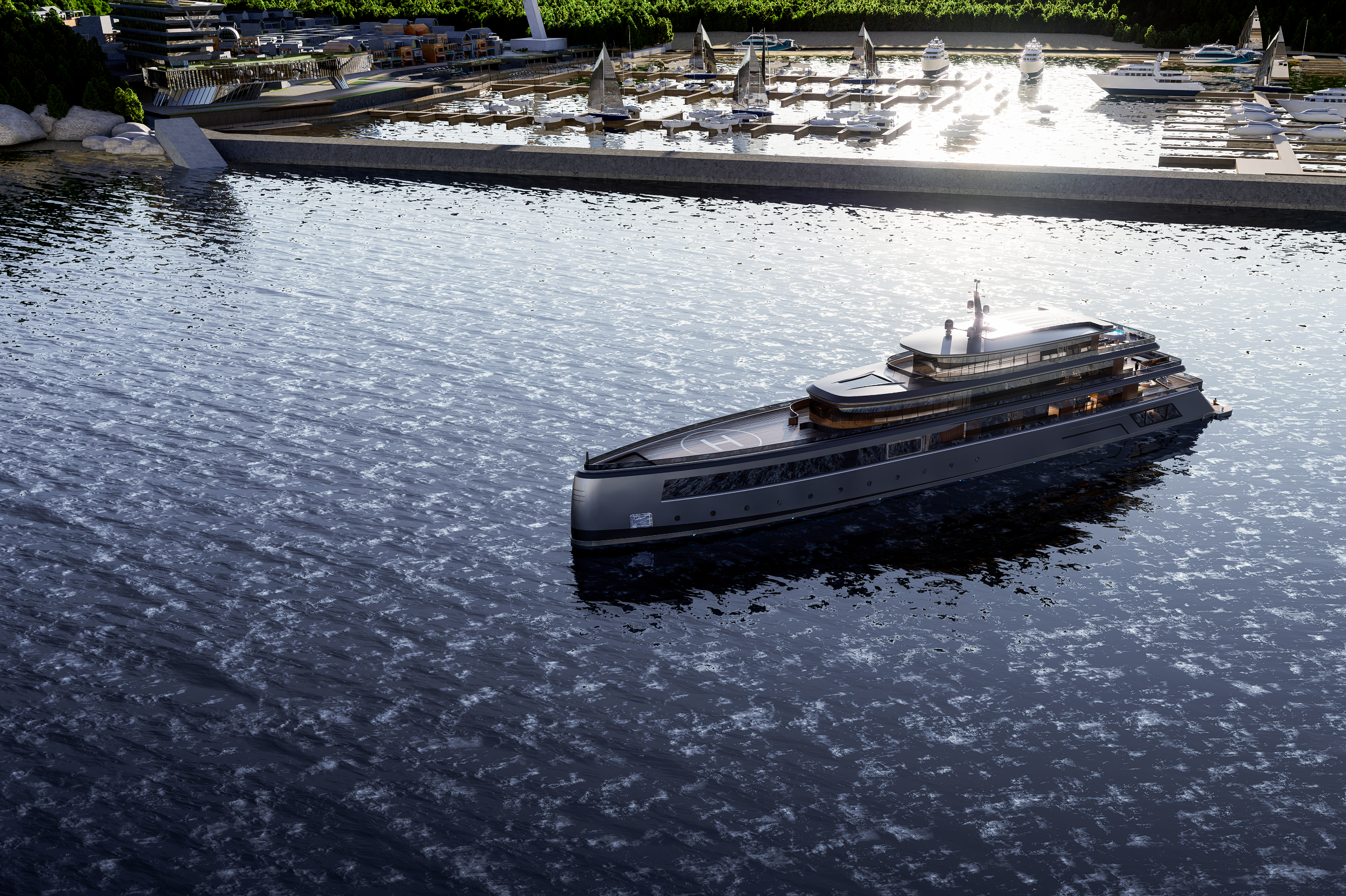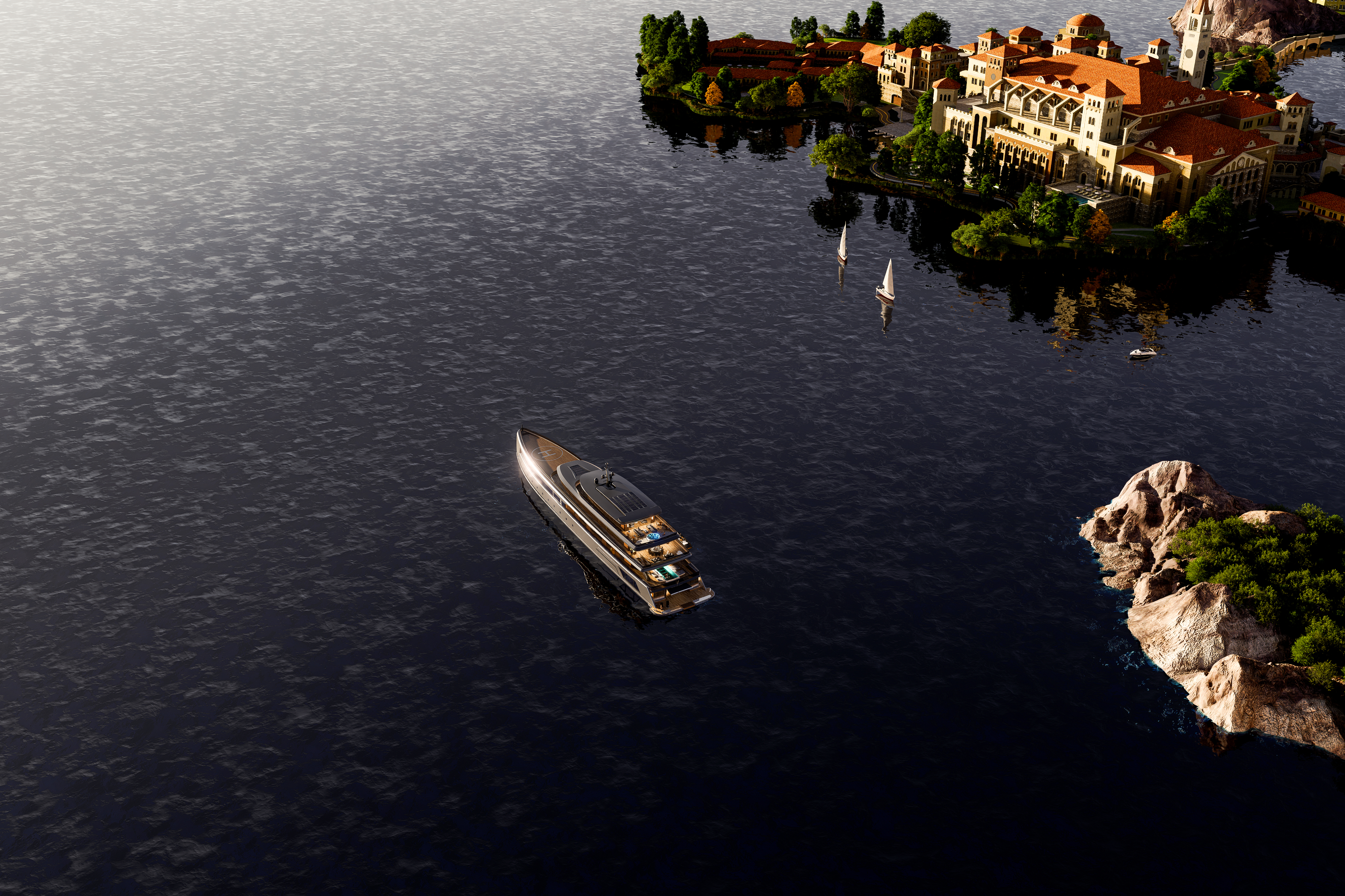 - The exterior design of Starwander complements the profound symbolism of its name, presenting a striking visual embodiment of futurism. The yacht's primary color is metallic gray, with its shimmering surface gleaming under sunlight like a starship navigating the depths of the cosmos. Its sleek, streamlined shape draws inspiration from the shark, merging power, speed, and elegance to create an aura of mastery over the oceans, akin to a celestial traveler freely exploring uncharted realms.