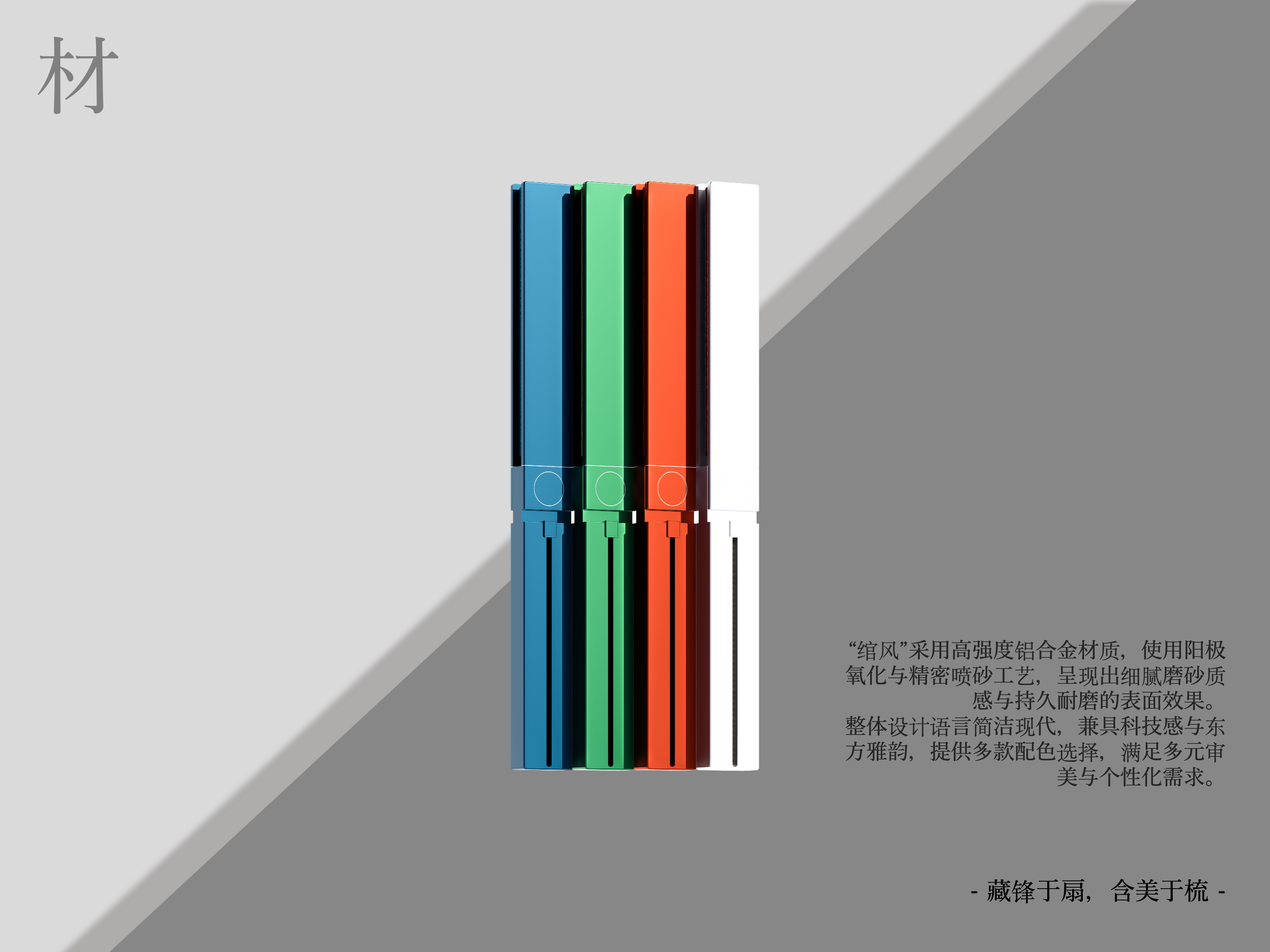 - We aim for this comb to transcend traditional definitions, becoming a modern design object that is both portable and playful. When closed, its form is sleek and restrained, cleverly concealing the comb teeth and functional elements, resembling a minimalist everyday object. With a gentle push of a small button, the comb section elegantly emerges, and the structural transformation surprises the user, revealing its true function and showcasing the seamless fusion of daily utility and creative design.