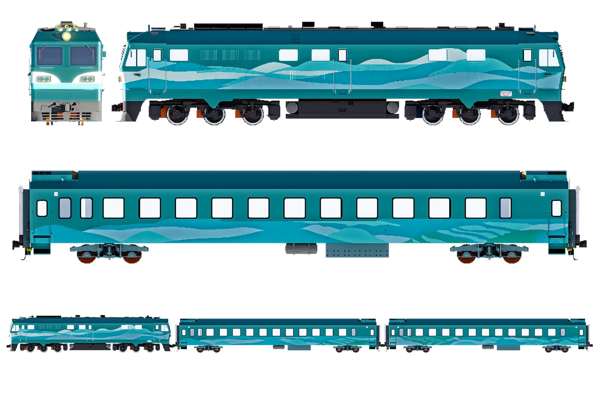 - We selected the DF4D diesel locomotive and Type 25G carriages as the design basis. The front of the locomotive is painted with the image of Sanqing Mist, while the car body features the image of Sanqing Mist and terraced fields.