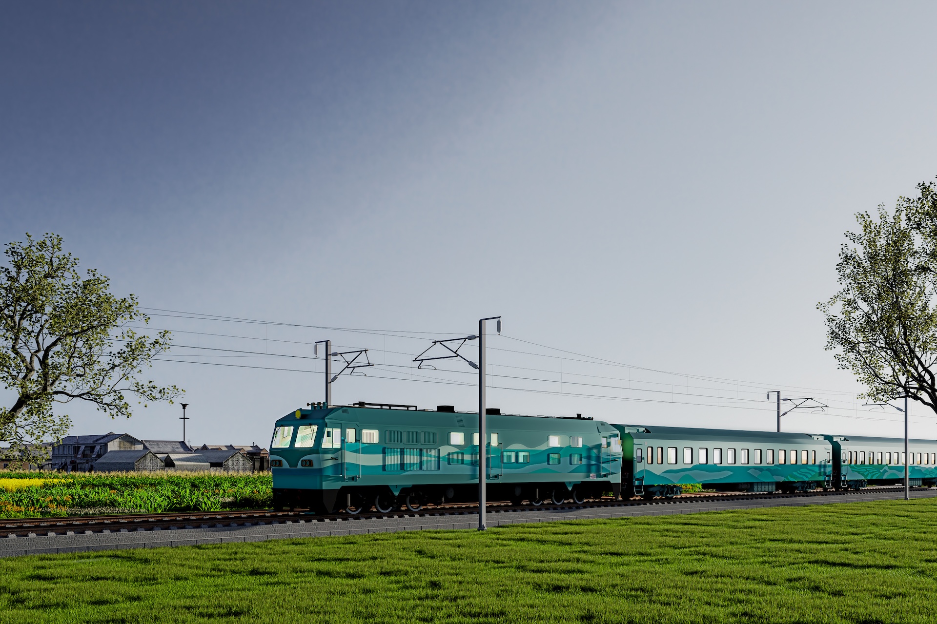 - 我们选取DF4D内燃机车和25G型车厢作为设计基础,车头涂装采用三清云岚形象,车身则采用三清云岚+梯田形象。