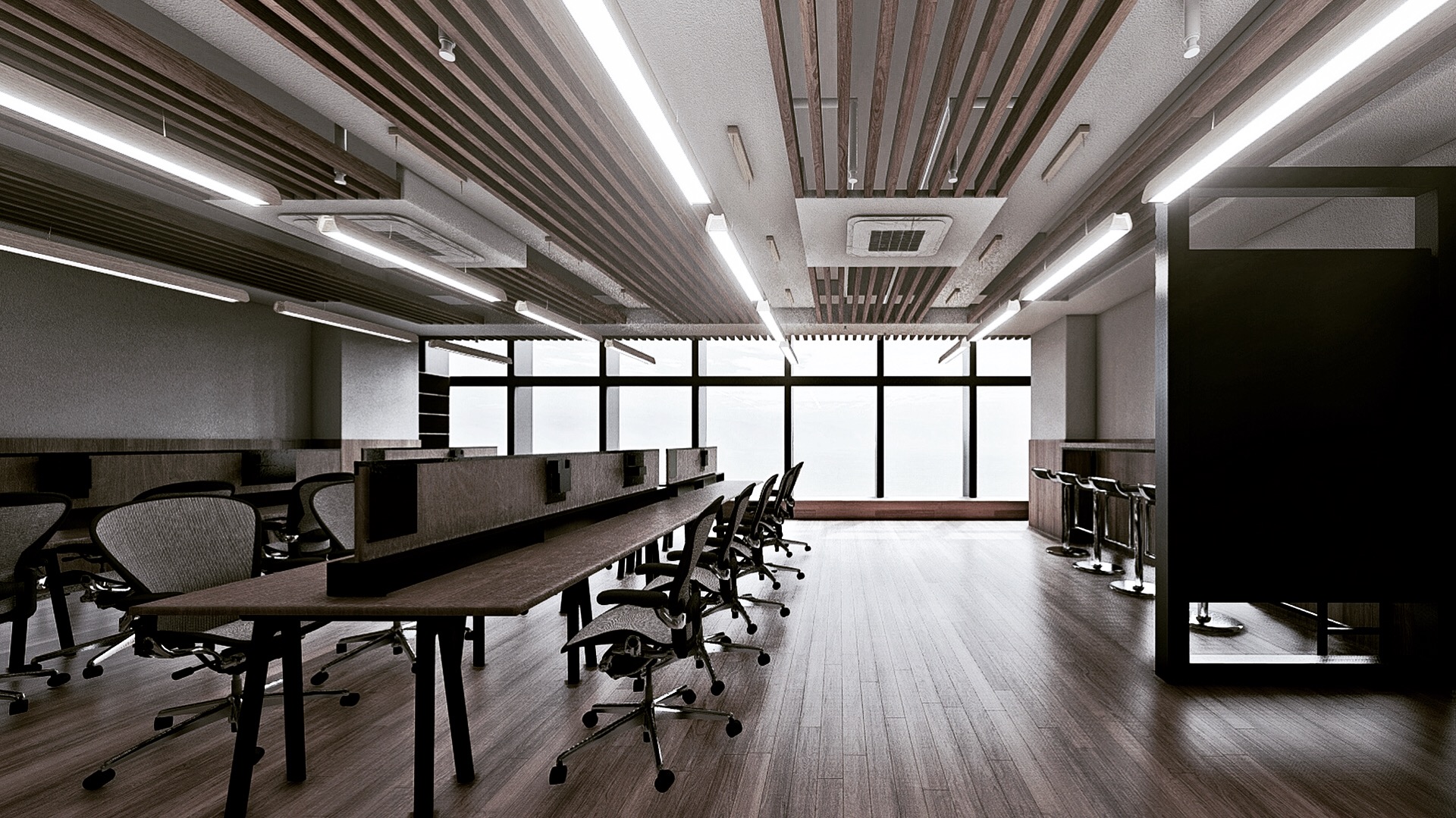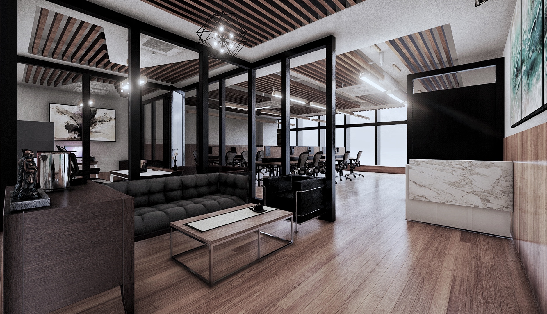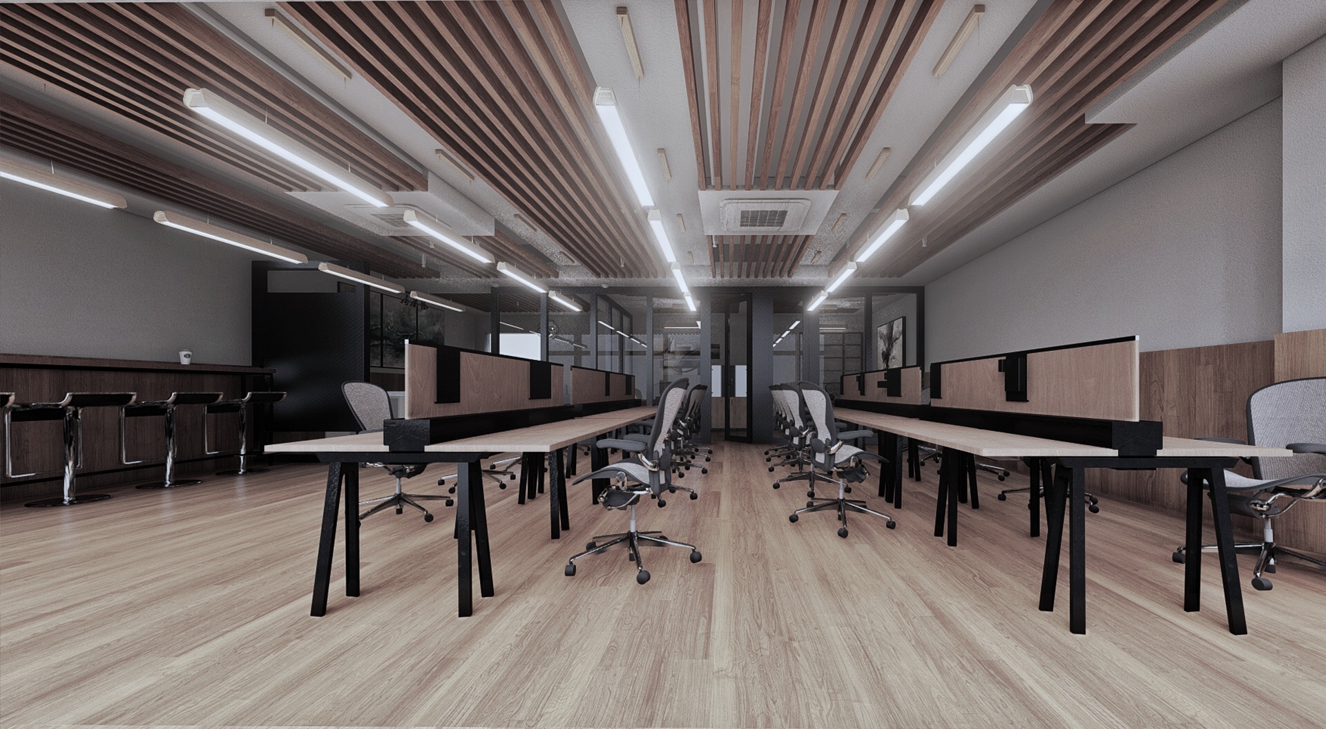 - The design rejects traditional neutral, cold, and formal office aesthetics. Instead, it uses wood textures and warm tones to create a visually and atmospherically inviting environment, offering a warm and welcoming experience for users.