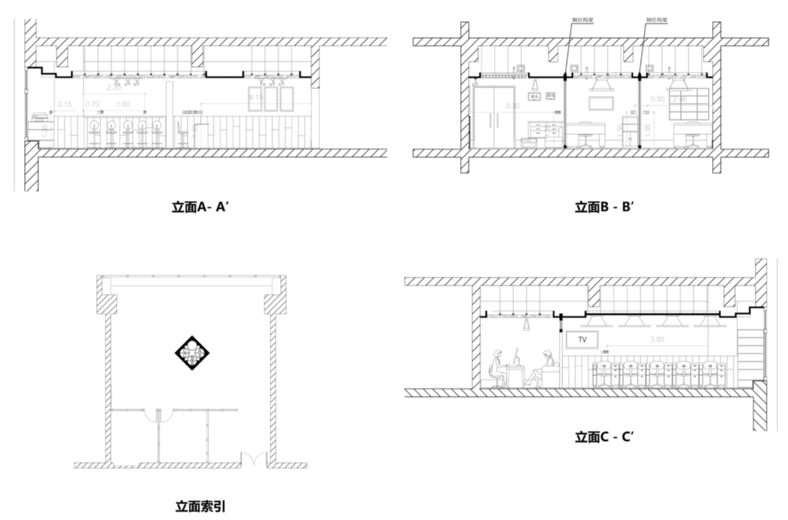 - 为了更好的利用其景观资源,我们放弃了将独立办公室置于外墙侧,而是将独立办公室置于内侧,让出开放式办公区、休闲区、茶饮会议区,同时,也将参访者进入的视线引向这得天独厚的视野。本项目也摒弃了传统办公空间中性、冰冷、格式化的设计思路,使用大量木质纹理、暖色硬软装来进行视觉和氛围引导,力求给予使用者以温暖、受欢迎的使用感受。